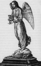 Rij 1: de engel die Jezus heeft getroost in de hof van Gethsemane - de lansen van de Romeinen die hem arresteerden en de zak met 30 zilverlingen die Judas kreeg voor zijn verraad - de haan die kraaide nadat Petrus Jezus drie keer had verraden, op de geselpaal met daarop de gesels en de hand die hem sloeg.